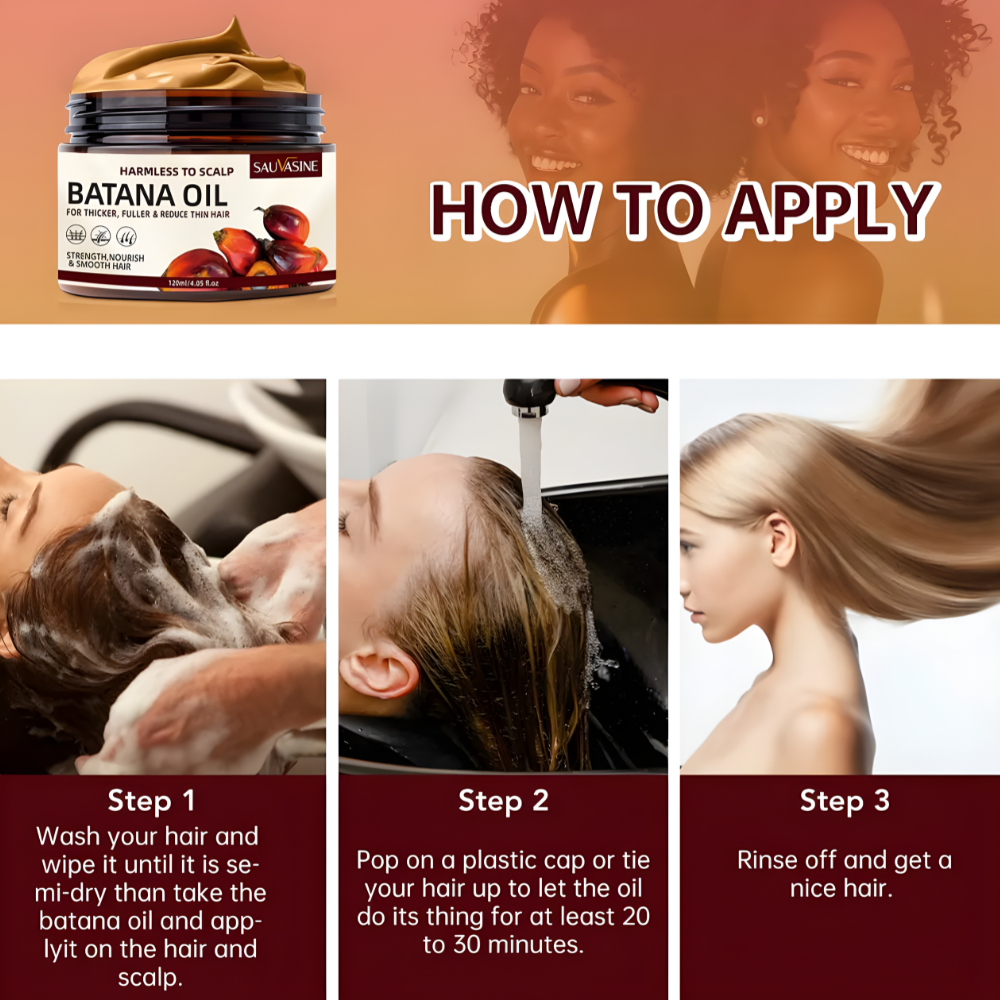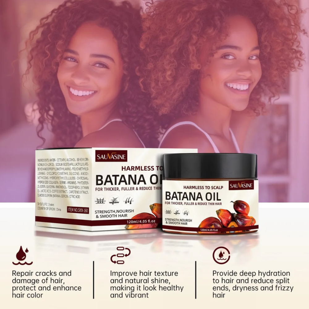 Aceite de Batana natural: Nuestras materias primas de aceite de Batana se extraen de la nuez a menudo la palmera americana, que se cultiva silvestre en Honduras. Es rico en vitaminas y minerales, que pueden proporcionar suficiente nutrición para el crecimiento del cabello.