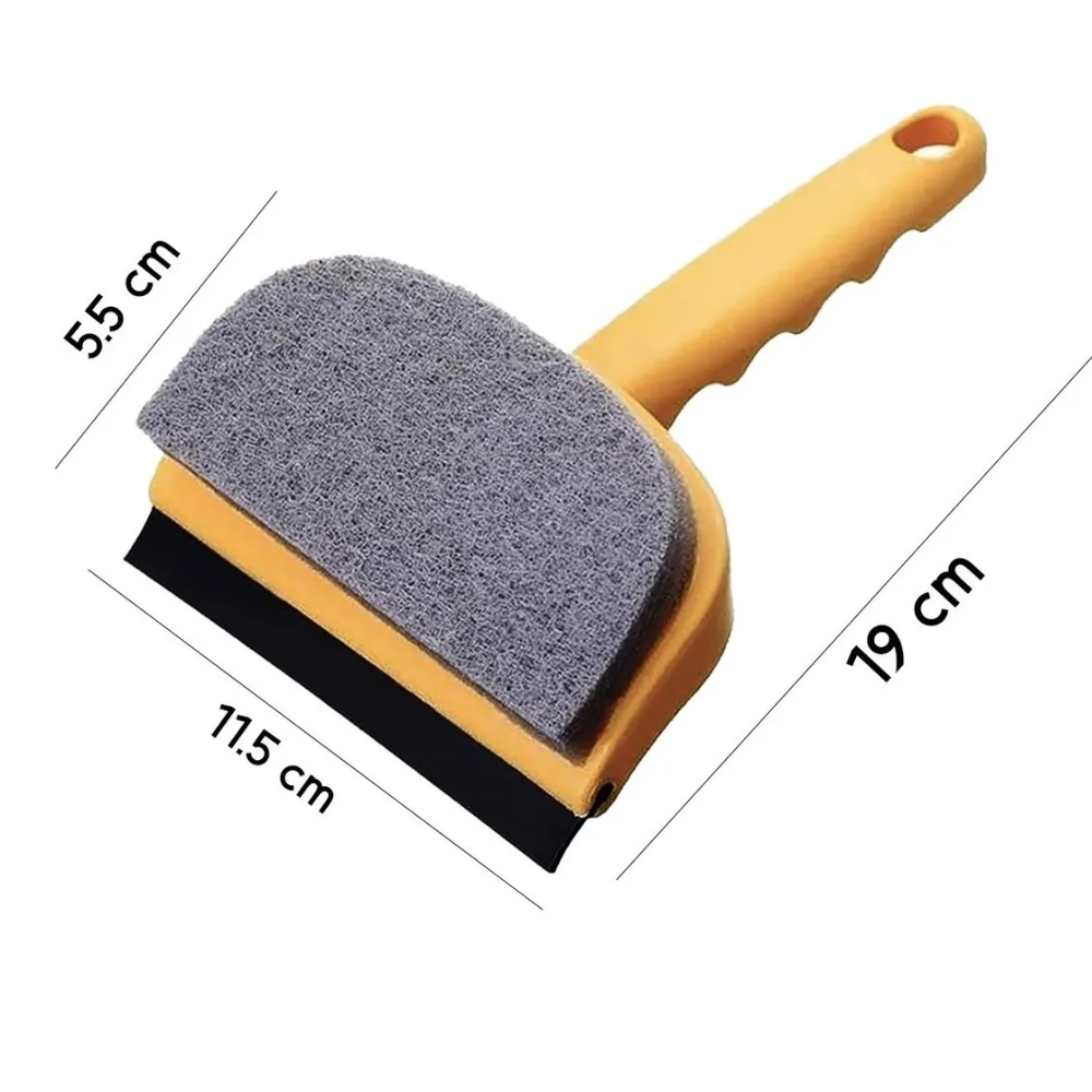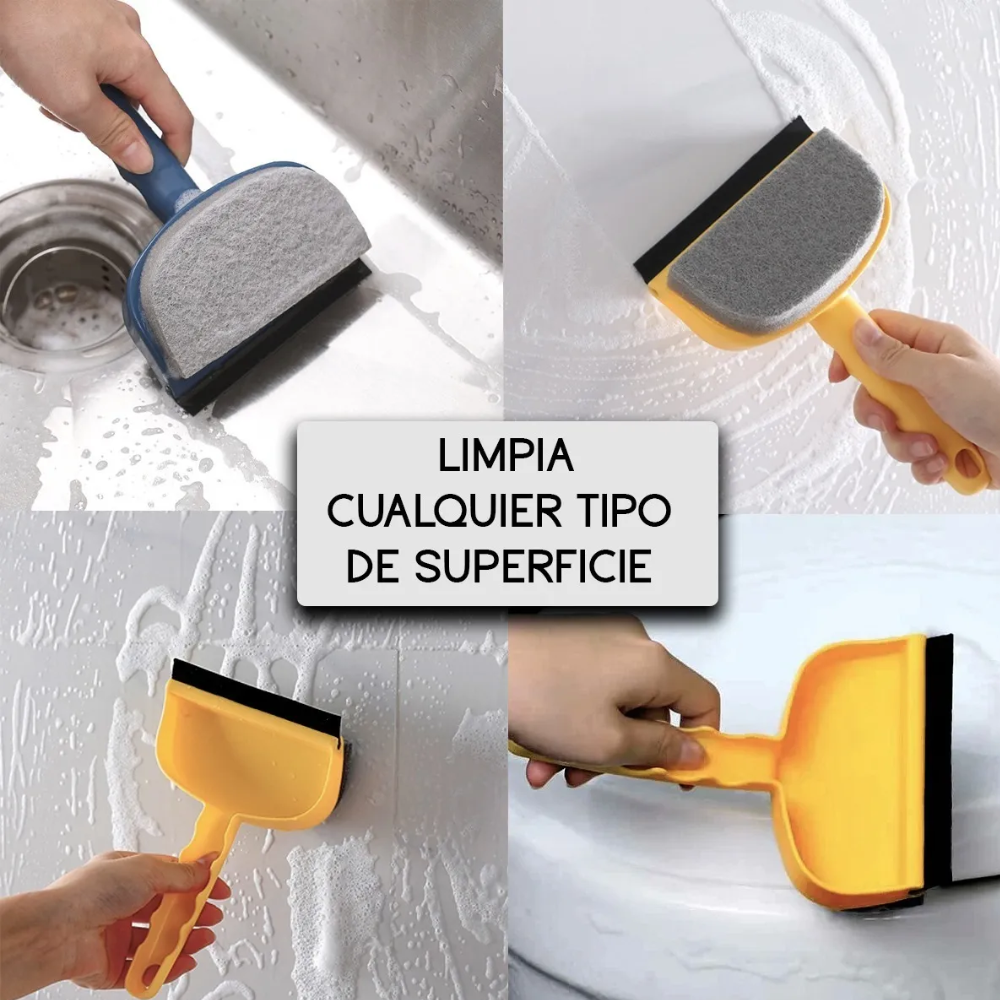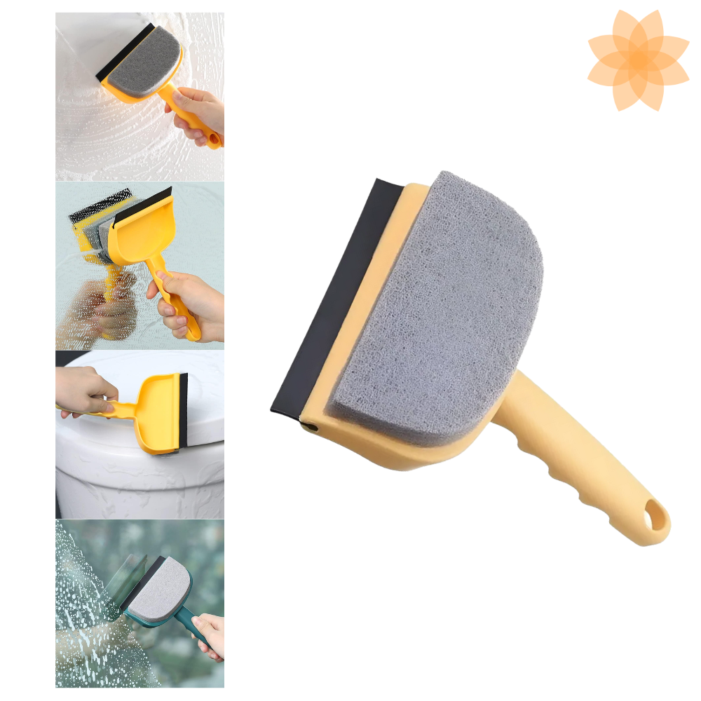 Práctico cepillo limpiador diseñado para facilitar la limpieza de ventanas, vidrios y superficies lisas, combinando esponja y escobilla de goma en un solo producto para un resultado más rápido y eficiente.