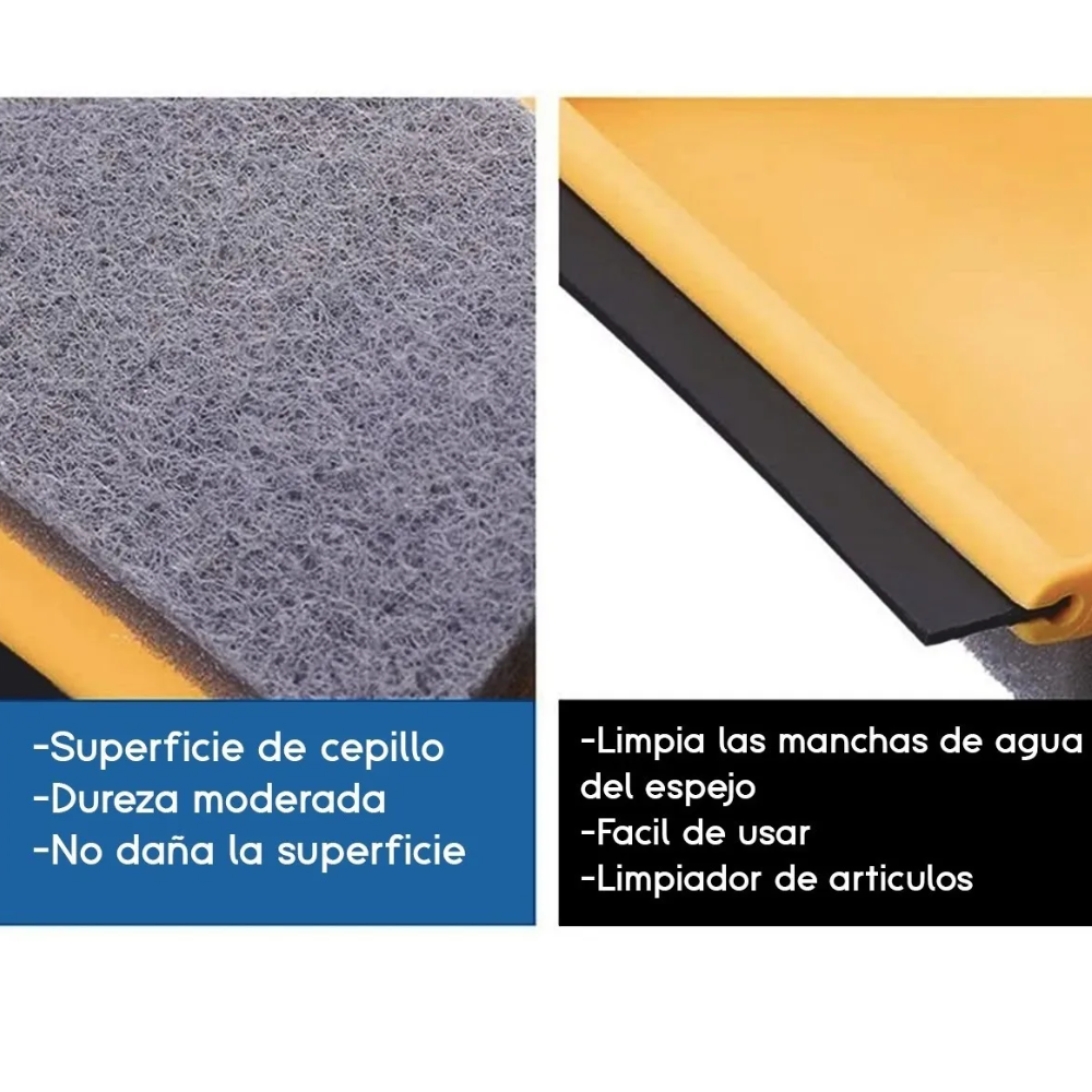 Cuenta con una esponja integrada que ayuda a remover polvo, suciedad y manchas, mientras que la escobilla de goma permite retirar el agua fácilmente, dejando las superficies limpias y sin marcas.
