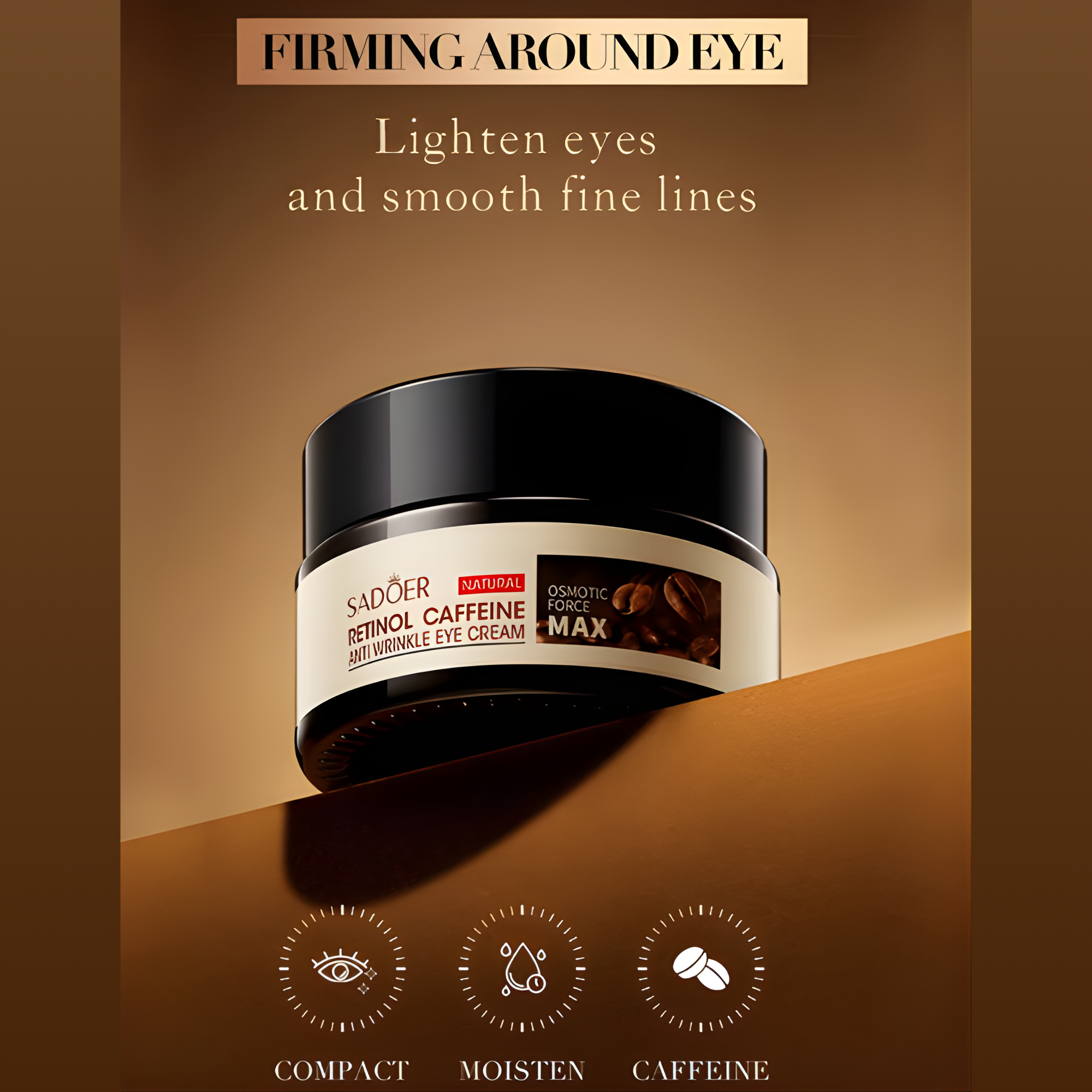 Reduce la hinchazón: La cafeína contribuye a disminuir la inflamación y la apariencia de ojeras, iluminando la zona.