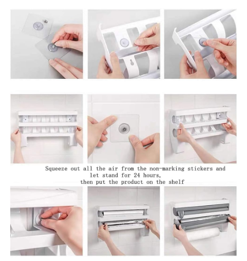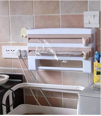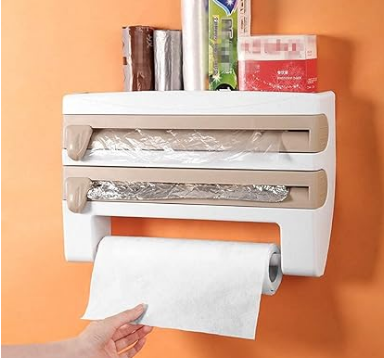 Este dispensador de montaje en pared está diseñado para almacenar y dispensar los rollos de cocina más utilizados de forma organizada.