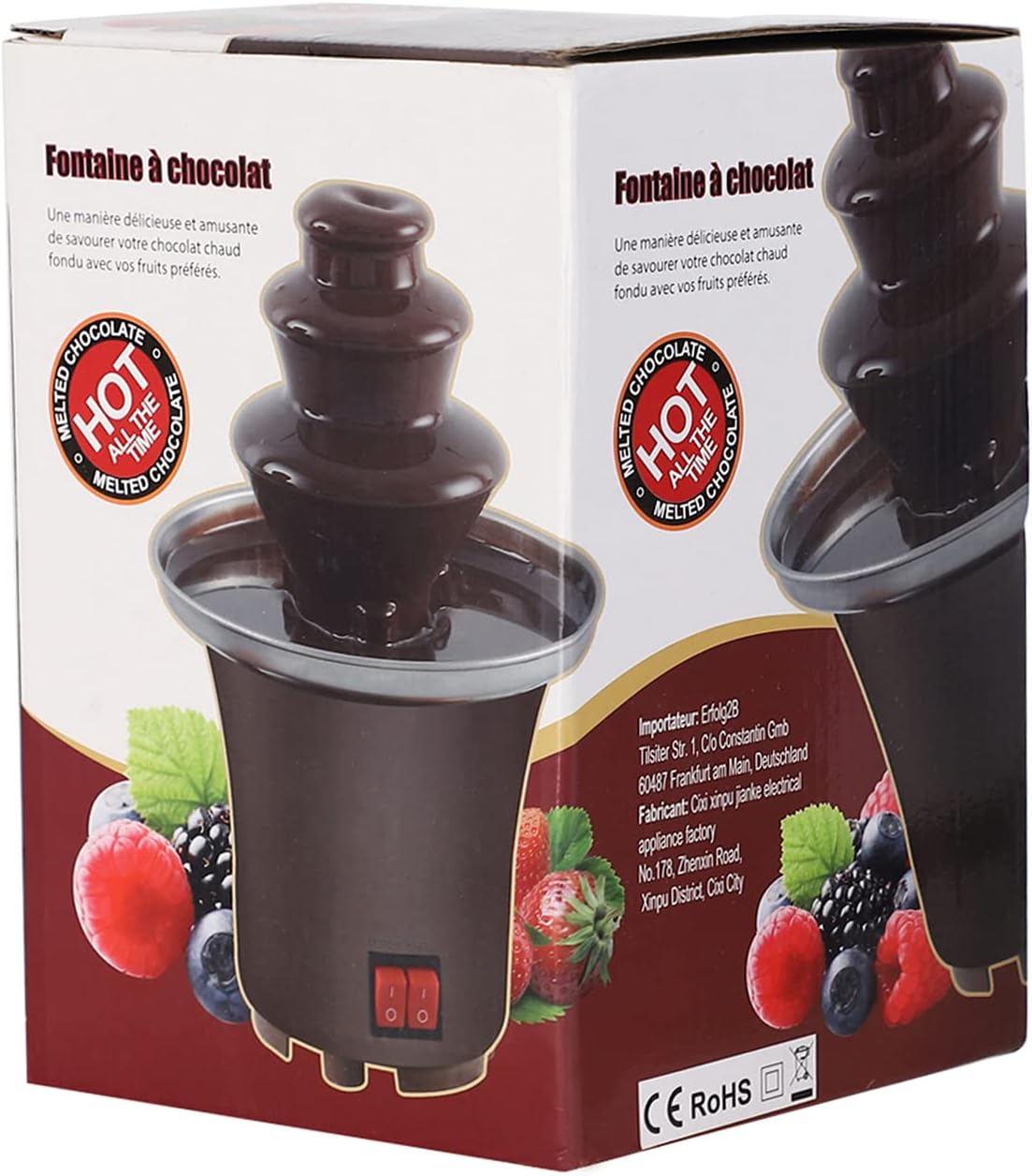 【MATERIALES DURADEROS】La fuente de la olla caliente de chocolate está hecha de plástico de alta calidad y está hecha de materiales de calidad alimentaria, que son duraderos y fáciles de limpiar. Tensión: 110v, potencia: 65w, frecuencia: 50hz, buena estabilidad, garantizar la seguridad y fiabilidad del producto durante su uso, excelente rendimiento de aislamiento térmico, mejorando así la seguridad del uso del producto y la seguridad alimentaria.