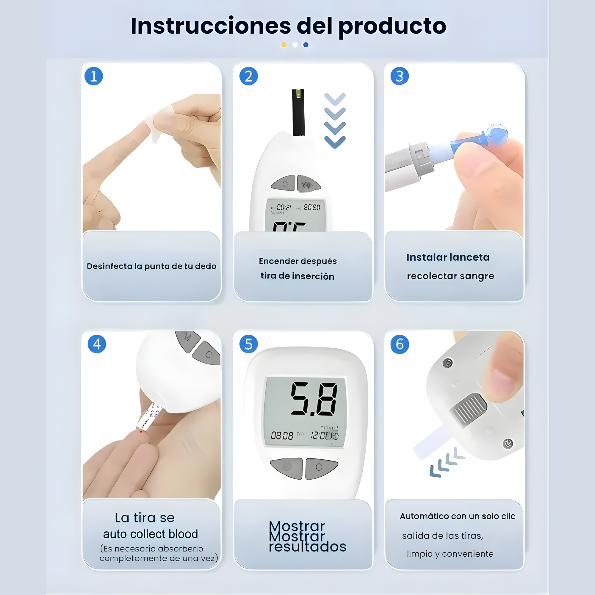 Ofrece resultados precisos y confiables en la medición de glucosa en sangre, lo que permite a los usuarios monitorear su salud de manera efectiva y tomar decisiones informadas sobre su tratamiento.