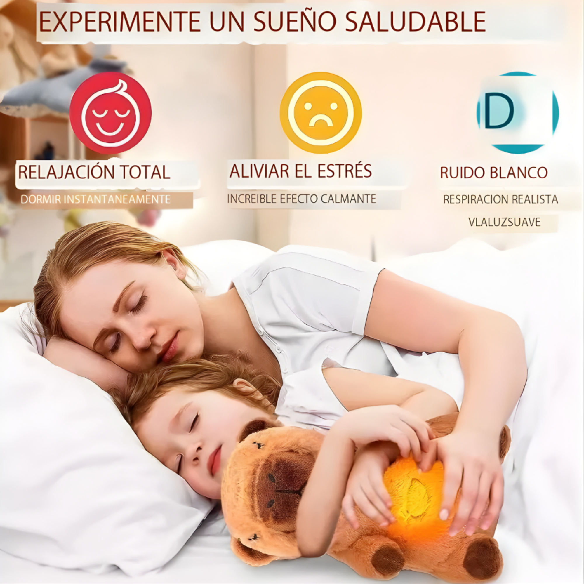 Regalos ideales para bebés: este es un juguete cómodo y atractivo que puede ayudar a calmar a los bebés como quieran, combinando estimulación auditiva y táctil para ayudar a un sueño reparador, una iluminación encantadora y una hermosa música pueden atraer rápidamente los ojos del bebé. La música puede calmar a tu bebé y promover el desarrollo del audio del bebé.