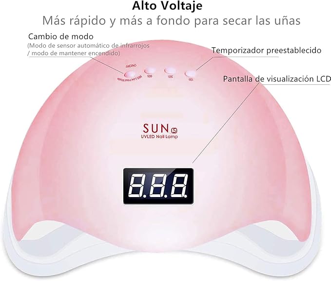 【48 W con 24 Perlas LED sin Espacio Vacío】 Lámpara de uña de gran vatio de 48W proporciona la seca de uñas muy rápida y fácil. Además la distribución de 24 cuentas de lámparas colocadas estratégicamente por todos rincones evita perfectamente el calentamiento desigual de las uñas, y por supuesto lo alivia del dolor al curar geles.
