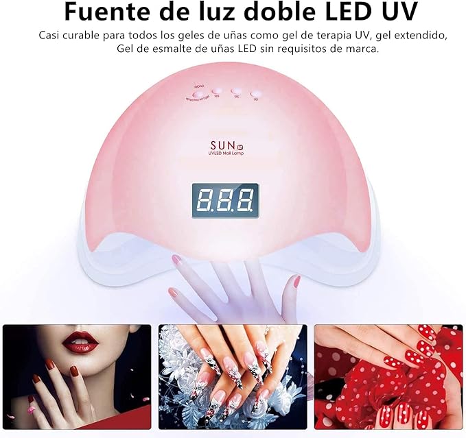 【2-en-1 LED/UV Lamp】Doble fuente de luz led(365+405nm), que no hace daño a la visión. El modo de baja temperadura y constante bien protege las uñas. Nuestra lámpara UV led tiene 4 modos de tiempo 10s 30s 60s 99s que sattisface con todos tipos de arte de uñas.
