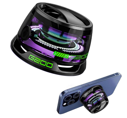 El G200 es un parlante (bocina) Bluetooth pequeño y portátil, popular por su diseño magnético que se adhiere a superficies metálicas y teléfonos compatibles con MagSafe, ofreciendo sonido envolvente 3D, luces RGB y modos de juego/música para una experiencia multimedia completa. Es ideal para música, juegos y videos, destacando por su potencia sorprendente para su tamaño, batería duradera y conectividad versátil.
