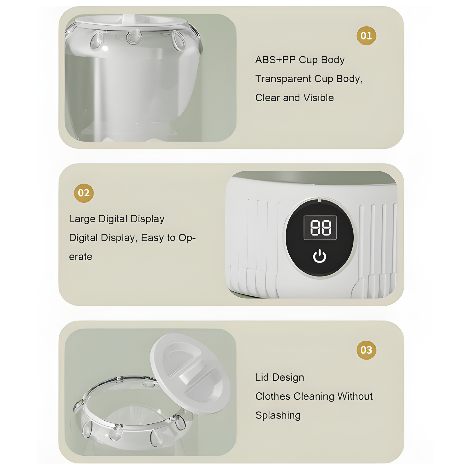 Diseño portátil: liviano y compacto, esta mini lavadora es adecuada para uso en el hogar o viajar, lo que le permite llevarla sin esfuerzo a donde quiera que vaya.