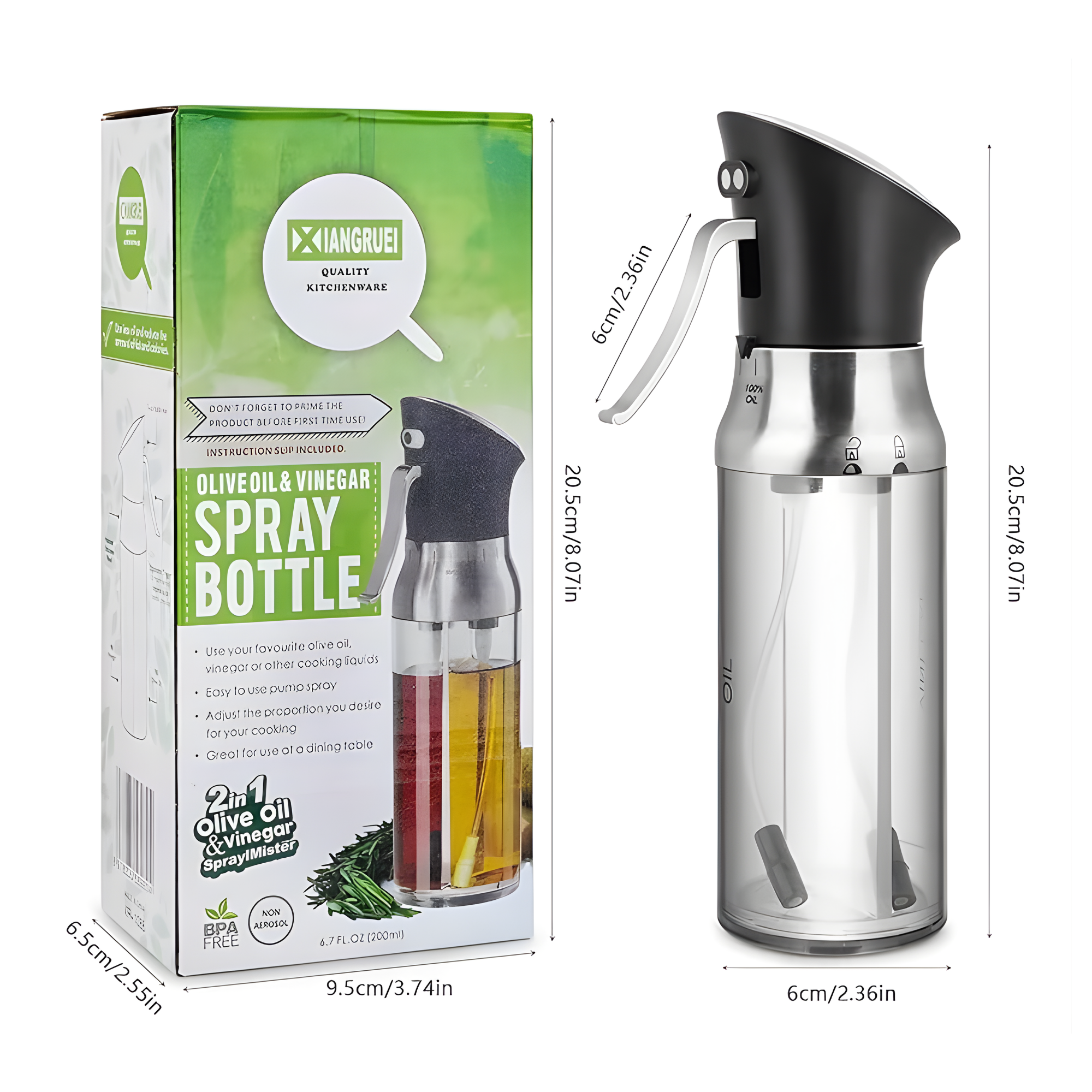 La botella rociadora de vinagre está diseñada con boquillas dobles, cada una con una capacidad de 100 ml en ambos lados, el tamaño es adecuado para el uso diario.