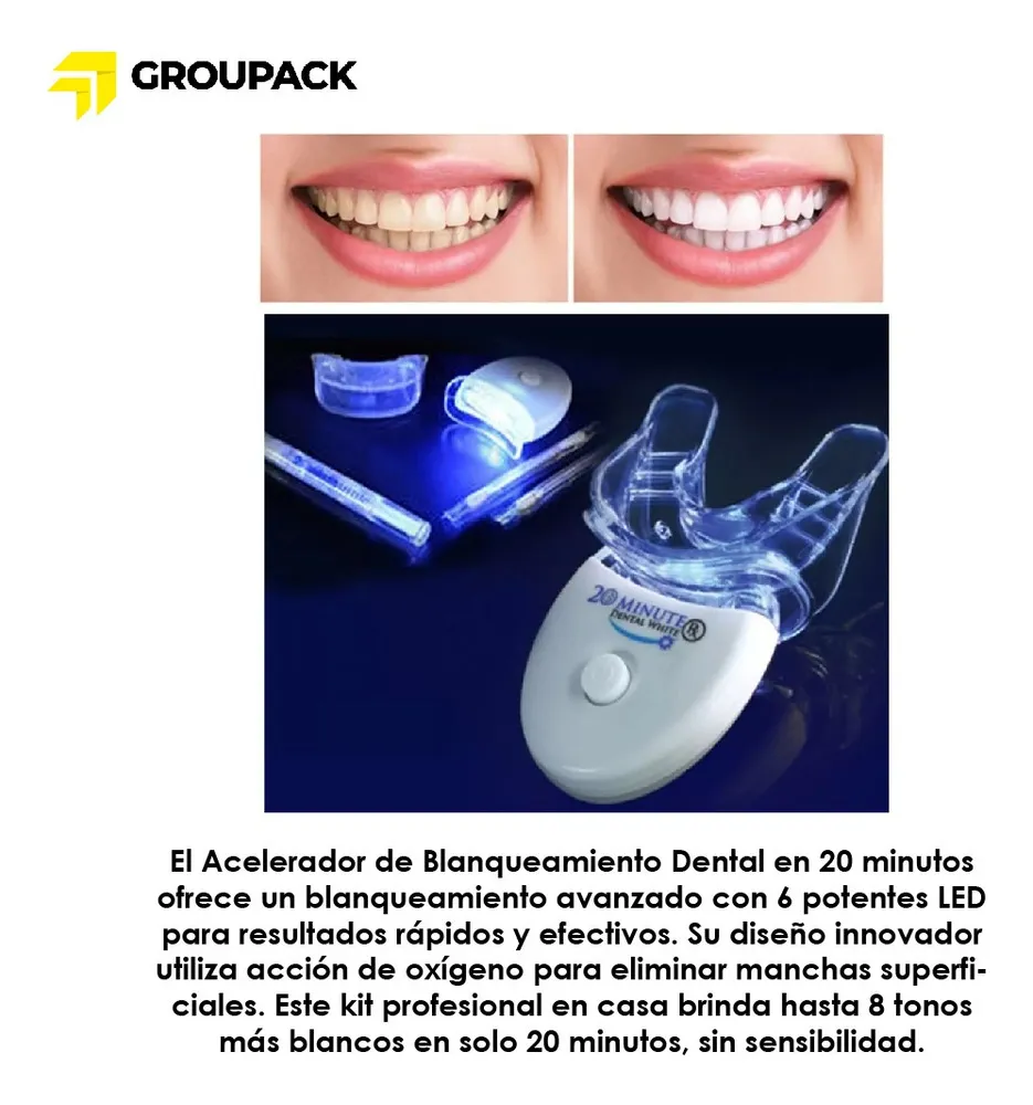 ¡Sonríe con confianza en solo 20 minutos! Descubre el Acelerador de Blanqueamiento Dental: 6 potentes LED for una sonrisa más brillante, sin sensibilidad. Transforma tu rutina con resultados rápidos y efectivos.
