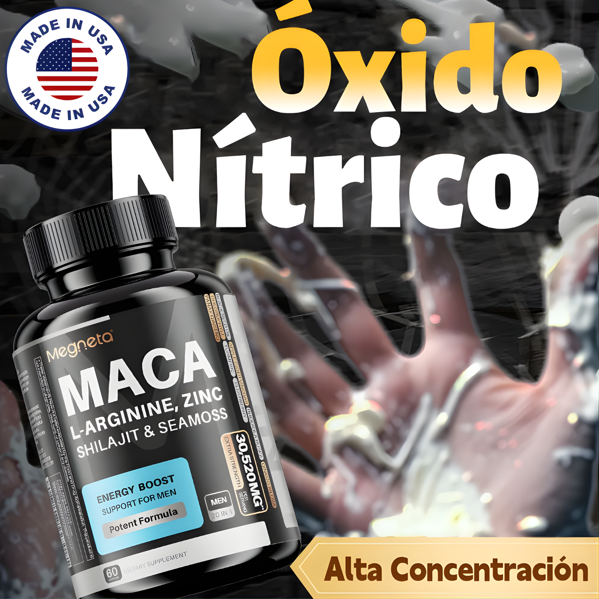 Shilajit (Asphaltum Punjabinum) (30:1) — 200 mg, equivalente a 6000 mg de polvo puro.