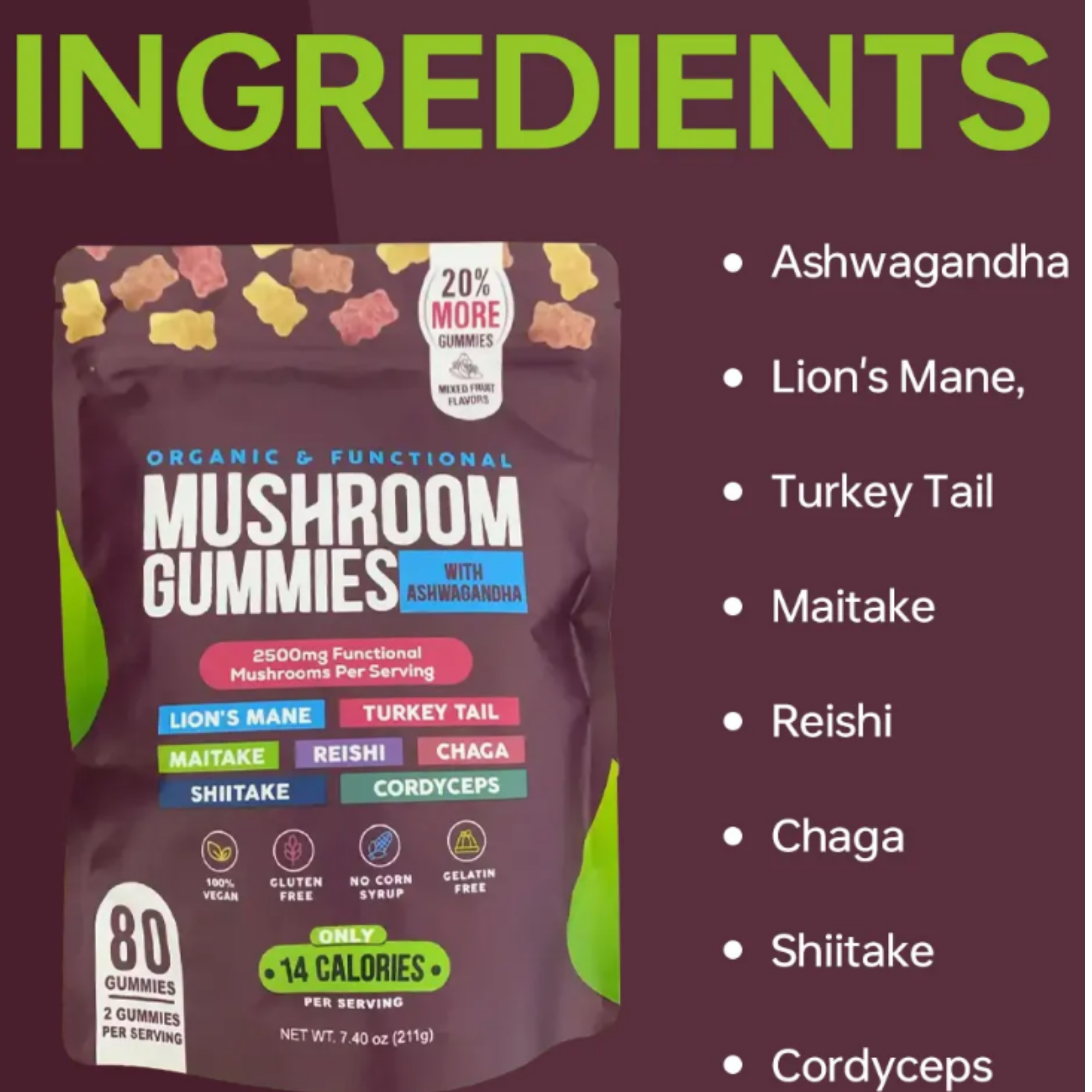 Gomitas elaboradas con ingredientes de alta calidad; promueve la claridad mental y el enfoque con este suplemento de hongos medicinales tradicionales.